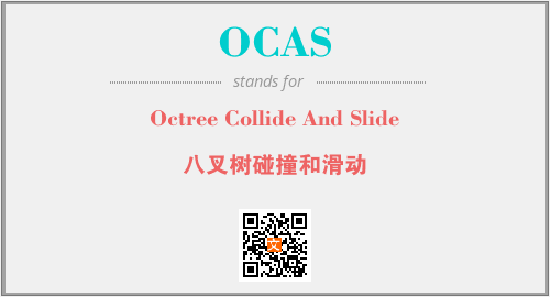 上述内容是“Octree Collide And Slide”作为“OCAS”的缩写,解释为“八叉树碰撞和滑动”时的信息,以及英文缩略词OCAS所代表的英文单词,其对应的中文拼音、详细解释以及在英文中的流行度和相关分类、应用领域及应用示例等。