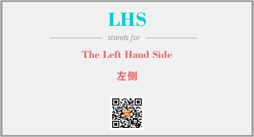 英文缩略词“LHS”经常作为“The Left Hand Side”的英文缩写来使用,中文表示:“左侧”。本文将详细介绍英文缩写词LHS所代表英文单词,其对应的中文拼音、详细解释以及在英语中的流行度。此外,还有关于缩略词LHS的分类、应用领域及相关应用示例等。