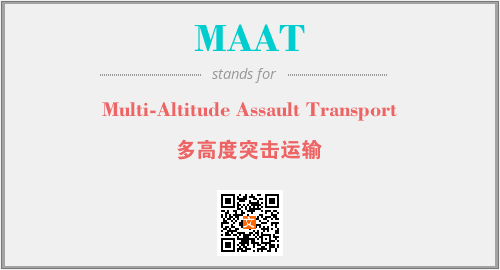 以上为Multi-Altitude Assault Transport英文缩略词MAAT的中文解释,以及该英文缩写在英语的流行度、分类和应用领域方面的信息。