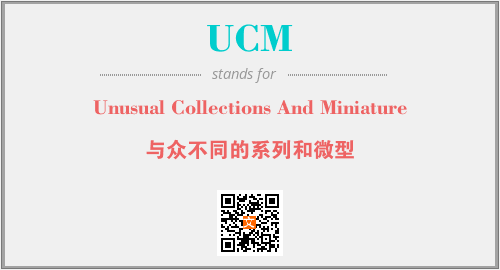 英文缩略词“UCM”经常作为“Unusual Collections And Miniature”的英文缩写来使用,中文表示:“与众不同的系列和微型”。本文将详细介绍英文缩写词UCM所代表英文单词,其对应的中文拼音、详细解释以及在英语中的流行度。此外,还有关于缩略词UCM的分类、应用领域及相关应用示例等。