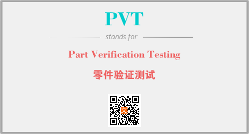 上述内容是“Part Verification Testing”作为“PVT”的缩写,解释为“零件验证测试”时的信息,以及英文缩略词PVT所代表的英文单词,其对应的中文拼音、详细解释以及在英文中的流行度和相关分类、应用领域及应用示例等。
