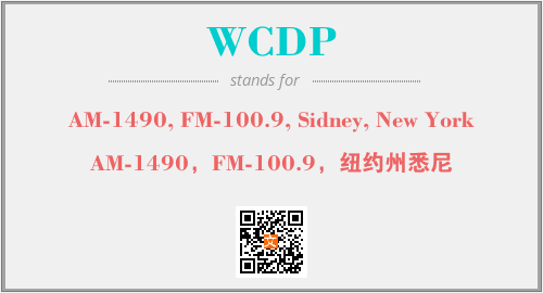 以上为AM-1490, FM-100.9, Sidney, New York英文缩略词WCDP的中文解释,以及该英文缩写在英语的流行度、分类和应用领域方面的信息。