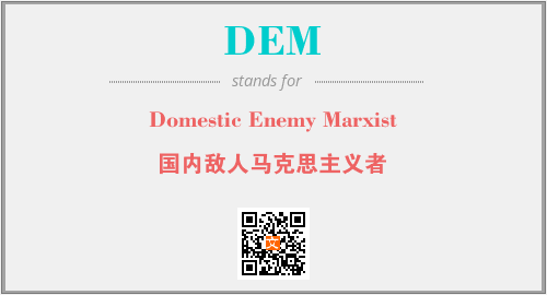 上述内容是“Domestic Enemy Marxist”作为“DEM”的缩写,解释为“国内敌人马克思主义者”时的信息,以及英文缩略词DEM所代表的英文单词,其对应的中文拼音、详细解释以及在英文中的流行度和相关分类、应用领域及应用示例等。
