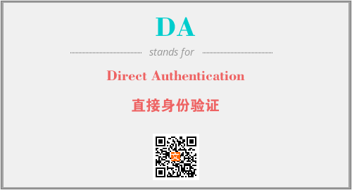 上述内容是“Direct Authentication”作为“DA”的缩写,解释为“直接身份验证”时的信息,以及英文缩略词DA所代表的英文单词,其对应的中文拼音、详细解释以及在英文中的流行度和相关分类、应用领域及应用示例等。