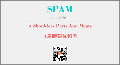 上述内容是“A Shoulders Parts And Meats”作为“SPAM”的缩写,解释为“A肩膀部位和肉”时的信息,以及英文缩略词SPAM所代表的英文单词,其对应的中文拼音、详细解释以及在英文中的流行度和相关分类、应用领域及应用示例等。