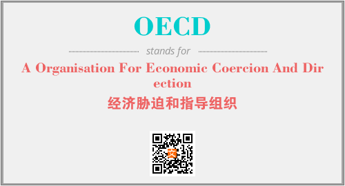 英文缩略词“OECD”经常作为“A Organisation For Economic Coercion And Direction”的英文缩写来使用,中文表示:“经济胁迫和指导组织”。本文将详细介绍英文缩写词OECD所代表英文单词,其对应的中文拼音、详细解释以及在英语中的流行度。此外,还有关于缩略词OECD的分类、应用领域及相关应用示例等。