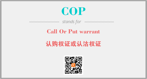 上述内容是“Call Or Put warrant”作为“COP”的缩写,解释为“认购权证或认沽权证”时的信息,以及英文缩略词COP所代表的英文单词,其对应的中文拼音、详细解释以及在英文中的流行度和相关分类、应用领域及应用示例等。
