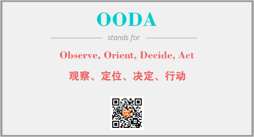 英文缩略词“OODA”经常作为“Observe, Orient, Decide, Act”的英文缩写来使用,中文表示:“观察、定位、决定、行动”。本文将详细介绍英文缩写词OODA所代表英文单词,其对应的中文拼音、详细解释以及在英语中的流行度。此外,还有关于缩略词OODA的分类、应用领域及相关应用示例等。