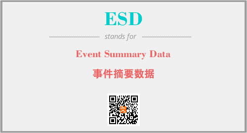 英文缩略词“ESD”经常作为“Event Summary Data”的英文缩写来使用,中文表示:“事件摘要数据”。本文将详细介绍英文缩写词ESD所代表英文单词,其对应的中文拼音、详细解释以及在英语中的流行度。此外,还有关于缩略词ESD的分类、应用领域及相关应用示例等。