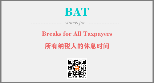 上述内容是“Breaks for All Taxpayers”作为“BAT”的缩写,解释为“所有纳税人的休息时间”时的信息,以及英文缩略词BAT所代表的英文单词,其对应的中文拼音、详细解释以及在英文中的流行度和相关分类、应用领域及应用示例等。