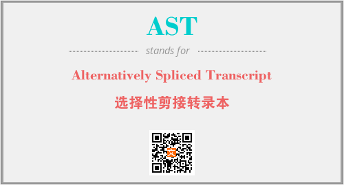 上述内容是“Alternatively Spliced Transcript”作为“AST”的缩写,解释为“选择性剪接转录本”时的信息,以及英文缩略词AST所代表的英文单词,其对应的中文拼音、详细解释以及在英文中的流行度和相关分类、应用领域及应用示例等。