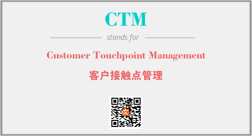 英文缩略词“CTM”经常作为“Customer Touchpoint Management”的英文缩写来使用,中文表示:“客户接触点管理”。本文将详细介绍英文缩写词CTM所代表英文单词,其对应的中文拼音、详细解释以及在英语中的流行度。此外,还有关于缩略词CTM的分类、应用领域及相关应用示例等。