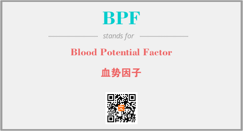 以上为Blood Potential Factor英文缩略词BPF的中文解释,以及该英文缩写在英语的流行度、分类和应用领域方面的信息。