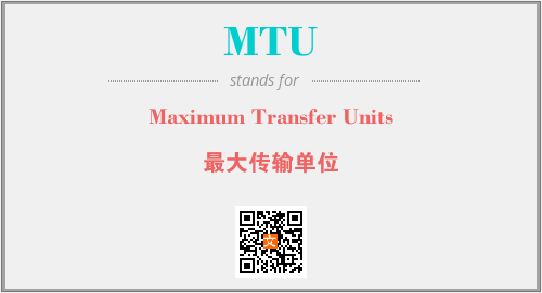 上述内容是“Maximum Transfer Units”作为“MTU”的缩写,解释为“最大传输单位”时的信息,以及英文缩略词MTU所代表的英文单词,其对应的中文拼音、详细解释以及在英文中的流行度和相关分类、应用领域及应用示例等。