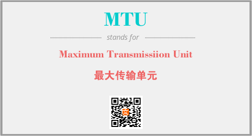 上述内容是“Maximum Transmissiion Unit”作为“MTU”的缩写,解释为“最大传输单元”时的信息,以及英文缩略词MTU所代表的英文单词,其对应的中文拼音、详细解释以及在英文中的流行度和相关分类、应用领域及应用示例等。