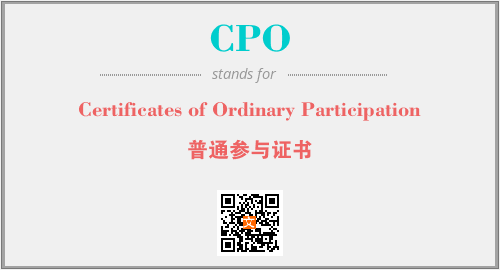 英文缩略词“CPO”经常作为“Certificates of Ordinary Participation”的英文缩写来使用,中文表示:“普通参与证书”。本文将详细介绍英文缩写词CPO所代表英文单词,其对应的中文拼音、详细解释以及在英语中的流行度。此外,还有关于缩略词CPO的分类、应用领域及相关应用示例等。