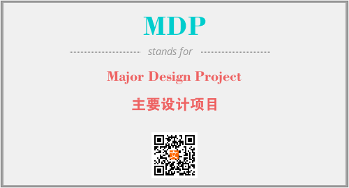 英文缩略词“MDP”经常作为“Major Design Project”的英文缩写来使用,中文表示:“主要设计项目”。本文将详细介绍英文缩写词MDP所代表英文单词,其对应的中文拼音、详细解释以及在英语中的流行度。此外,还有关于缩略词MDP的分类、应用领域及相关应用示例等。