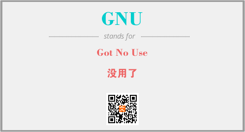 上述内容是“Got No Use”作为“GNU”的缩写,解释为“没用了”时的信息,以及英文缩略词GNU所代表的英文单词,其对应的中文拼音、详细解释以及在英文中的流行度和相关分类、应用领域及应用示例等。