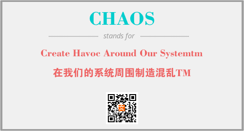 上述内容是“Create Havoc Around Our Systemtm”作为“CHAOS”的缩写,解释为“在我们的系统周围制造混乱TM”时的信息,以及英文缩略词CHAOS所代表的英文单词,其对应的中文拼音、详细解释以及在英文中的流行度和相关分类、应用领域及应用示例等。