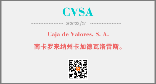上述内容是“Caja de Valores, S. A.”作为“CVSA”的缩写,解释为“南卡罗来纳州卡加德瓦洛雷斯。”时的信息,以及英文缩略词CVSA所代表的英文单词,其对应的中文拼音、详细解释以及在英文中的流行度和相关分类、应用领域及应用示例等。