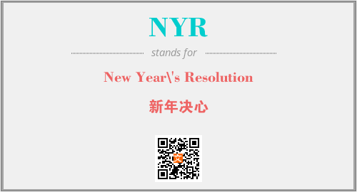 以上为New Year\'s Resolution英文缩略词NYR的中文解释,以及该英文缩写在英语的流行度、分类和应用领域方面的信息。