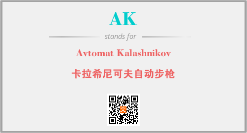 以上为Avtomat Kalashnikov英文缩略词AK的中文解释,以及该英文缩写在英语的流行度、分类和应用领域方面的信息。
