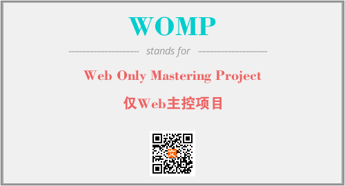 英文缩略词“WOMP”经常作为“Web Only Mastering Project”的英文缩写来使用,中文表示:“仅Web主控项目”。本文将详细介绍英文缩写词WOMP所代表英文单词,其对应的中文拼音、详细解释以及在英语中的流行度。此外,还有关于缩略词WOMP的分类、应用领域及相关应用示例等。