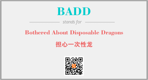 英文缩略词“BADD”经常作为“Bothered About Disposable Dragons”的英文缩写来使用,中文表示:“担心一次性龙”。本文将详细介绍英文缩写词BADD所代表英文单词,其对应的中文拼音、详细解释以及在英语中的流行度。此外,还有关于缩略词BADD的分类、应用领域及相关应用示例等。