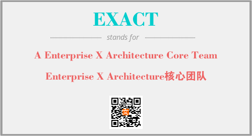 上述内容是“A Enterprise X Architecture Core Team”作为“EXACT”的缩写,解释为“Enterprise X Architecture核心团队”时的信息,以及英文缩略词EXACT所代表的英文单词,其对应的中文拼音、详细解释以及在英文中的流行度和相关分类、应用领域及应用示例等。