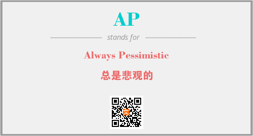 英文缩略词“AP”经常作为“Always Pessimistic”的英文缩写来使用,中文表示:“总是悲观的”。本文将详细介绍英文缩写词AP所代表英文单词,其对应的中文拼音、详细解释以及在英语中的流行度。此外,还有关于缩略词AP的分类、应用领域及相关应用示例等。