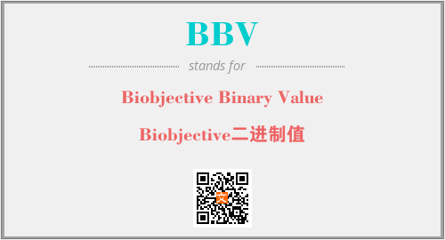 上述内容是“Biobjective Binary Value”作为“BBV”的缩写,解释为“Biobjective二进制值”时的信息,以及英文缩略词BBV所代表的英文单词,其对应的中文拼音、详细解释以及在英文中的流行度和相关分类、应用领域及应用示例等。