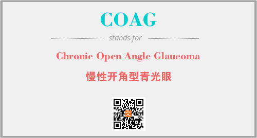 上述内容是“Chronic Open Angle Glaucoma”作为“COAG”的缩写,解释为“慢性开角型青光眼”时的信息,以及英文缩略词COAG所代表的英文单词,其对应的中文拼音、详细解释以及在英文中的流行度和相关分类、应用领域及应用示例等。