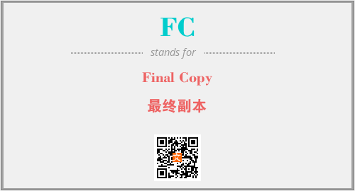 英文缩略词“FC”经常作为“Final Copy”的英文缩写来使用,中文表示:“最终副本”。本文将详细介绍英文缩写词FC所代表英文单词,其对应的中文拼音、详细解释以及在英语中的流行度。此外,还有关于缩略词FC的分类、应用领域及相关应用示例等。