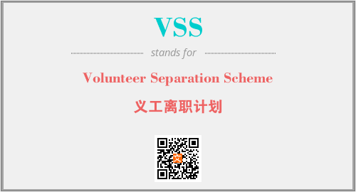 上述内容是“Volunteer Separation Scheme”作为“VSS”的缩写,解释为“义工离职计划”时的信息,以及英文缩略词VSS所代表的英文单词,其对应的中文拼音、详细解释以及在英文中的流行度和相关分类、应用领域及应用示例等。