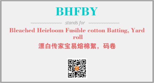 英文缩略词“BHFBY”经常作为“Bleached Heirloom Fusible cotton Batting, Yard roll”的英文缩写来使用,中文表示:“漂白传家宝易熔棉絮,码卷”。本文将详细介绍英文缩写词BHFBY所代表英文单词,其对应的中文拼音、详细解释以及在英语中的流行度。此外,还有关于缩略词BHFBY的分类、应用领域及相关应用示例等。