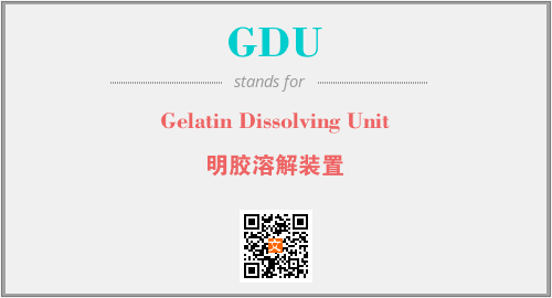 英文缩略词“GDU”经常作为“Gelatin Dissolving Unit”的英文缩写来使用,中文表示:“明胶溶解装置”。本文将详细介绍英文缩写词GDU所代表英文单词,其对应的中文拼音、详细解释以及在英语中的流行度。此外,还有关于缩略词GDU的分类、应用领域及相关应用示例等。