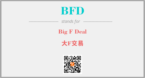 英文缩略词“BFD”经常作为“Big F Deal”的英文缩写来使用,中文表示:“大F交易”。本文将详细介绍英文缩写词BFD所代表英文单词,其对应的中文拼音、详细解释以及在英语中的流行度。此外,还有关于缩略词BFD的分类、应用领域及相关应用示例等。