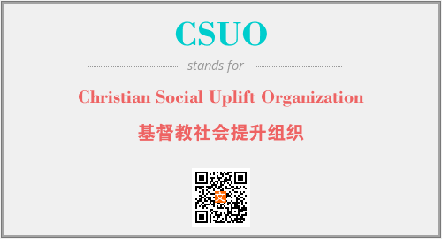 上述内容是“Christian Social Uplift Organization”作为“CSUO”的缩写,解释为“基督教社会提升组织”时的信息,以及英文缩略词CSUO所代表的英文单词,其对应的中文拼音、详细解释以及在英文中的流行度和相关分类、应用领域及应用示例等。