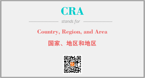上述内容是“Country, Region, and Area”作为“CRA”的缩写,解释为“国家、地区和地区”时的信息,以及英文缩略词CRA所代表的英文单词,其对应的中文拼音、详细解释以及在英文中的流行度和相关分类、应用领域及应用示例等。