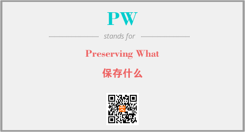 上述内容是“Preserving What”作为“PW”的缩写,解释为“保存什么”时的信息,以及英文缩略词PW所代表的英文单词,其对应的中文拼音、详细解释以及在英文中的流行度和相关分类、应用领域及应用示例等。