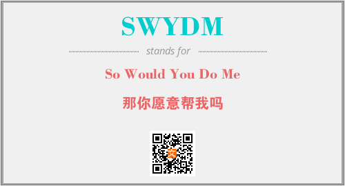 上述内容是“So Would You Do Me”作为“SWYDM”的缩写,解释为“那你愿意帮我吗”时的信息,以及英文缩略词SWYDM所代表的英文单词,其对应的中文拼音、详细解释以及在英文中的流行度和相关分类、应用领域及应用示例等。