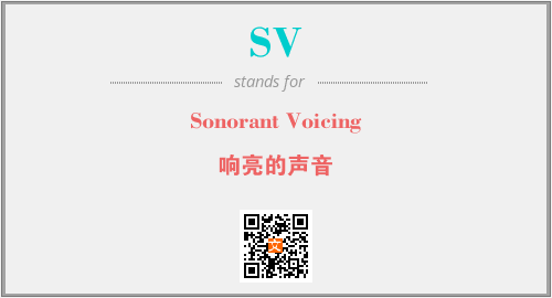 上述内容是“Sonorant Voicing”作为“SV”的缩写,解释为“响亮的声音”时的信息,以及英文缩略词SV所代表的英文单词,其对应的中文拼音、详细解释以及在英文中的流行度和相关分类、应用领域及应用示例等。