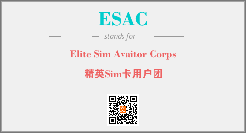 英文缩略词“ESAC”经常作为“Elite Sim Avaitor Corps”的英文缩写来使用,中文表示:“精英Sim卡用户团”。本文将详细介绍英文缩写词ESAC所代表英文单词,其对应的中文拼音、详细解释以及在英语中的流行度。此外,还有关于缩略词ESAC的分类、应用领域及相关应用示例等。