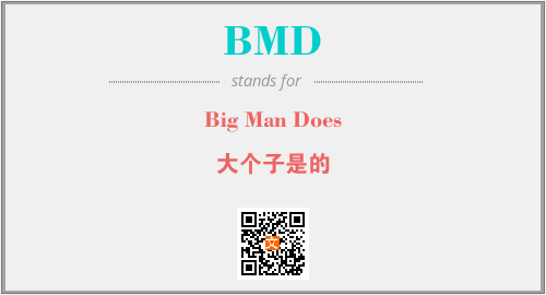 英文缩略词“BMD”经常作为“Big Man Does”的英文缩写来使用,中文表示:“大个子是的”。本文将详细介绍英文缩写词BMD所代表英文单词,其对应的中文拼音、详细解释以及在英语中的流行度。此外,还有关于缩略词BMD的分类、应用领域及相关应用示例等。