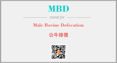 英文缩略词“MBD”经常作为“Male Bovine Defecation”的英文缩写来使用,中文表示:“公牛排便”。本文将详细介绍英文缩写词MBD所代表英文单词,其对应的中文拼音、详细解释以及在英语中的流行度。此外,还有关于缩略词MBD的分类、应用领域及相关应用示例等。