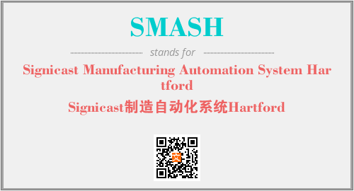 上述内容是“Signicast Manufacturing Automation System Hartford”作为“SMASH”的缩写,解释为“Signicast制造自动化系统Hartford”时的信息,以及英文缩略词SMASH所代表的英文单词,其对应的中文拼音、详细解释以及在英文中的流行度和相关分类、应用领域及应用示例等。