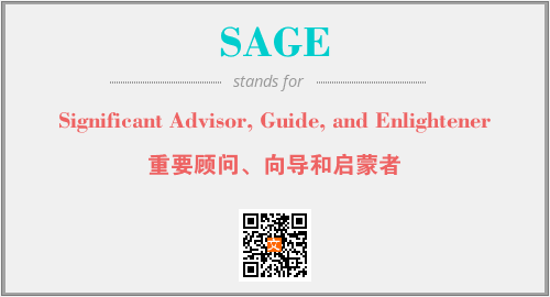 上述内容是“Significant Advisor, Guide, and Enlightener”作为“SAGE”的缩写,解释为“重要顾问、向导和启蒙者”时的信息,以及英文缩略词SAGE所代表的英文单词,其对应的中文拼音、详细解释以及在英文中的流行度和相关分类、应用领域及应用示例等。