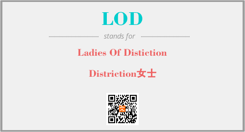 英文缩略词“LOD”经常作为“Ladies Of Distiction”的英文缩写来使用,中文表示:“Distriction女士”。本文将详细介绍英文缩写词LOD所代表英文单词,其对应的中文拼音、详细解释以及在英语中的流行度。此外,还有关于缩略词LOD的分类、应用领域及相关应用示例等。