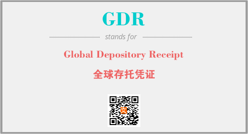 英文缩略词“GDR”经常作为“Global Depository Receipt”的英文缩写来使用,中文表示:“全球存托凭证”。本文将详细介绍英文缩写词GDR所代表英文单词,其对应的中文拼音、详细解释以及在英语中的流行度。此外,还有关于缩略词GDR的分类、应用领域及相关应用示例等。