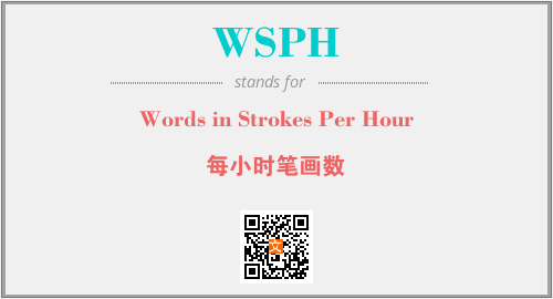 英文缩略词“WSPH”经常作为“Words in Strokes Per Hour”的英文缩写来使用,中文表示:“每小时笔画数”。本文将详细介绍英文缩写词WSPH所代表英文单词,其对应的中文拼音、详细解释以及在英语中的流行度。此外,还有关于缩略词WSPH的分类、应用领域及相关应用示例等。